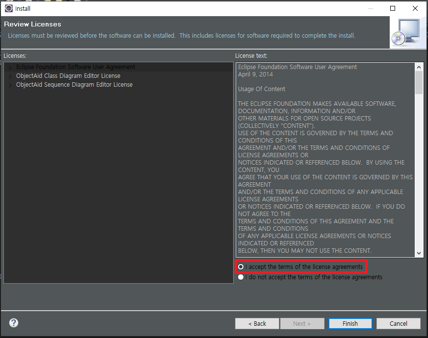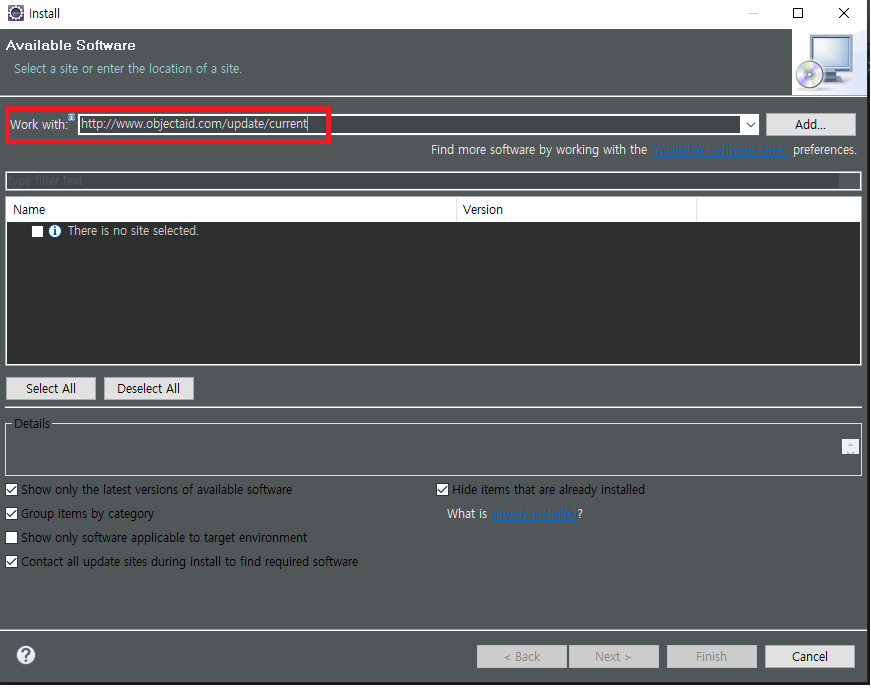 ObjectAid Exploere 를 설치합니다.