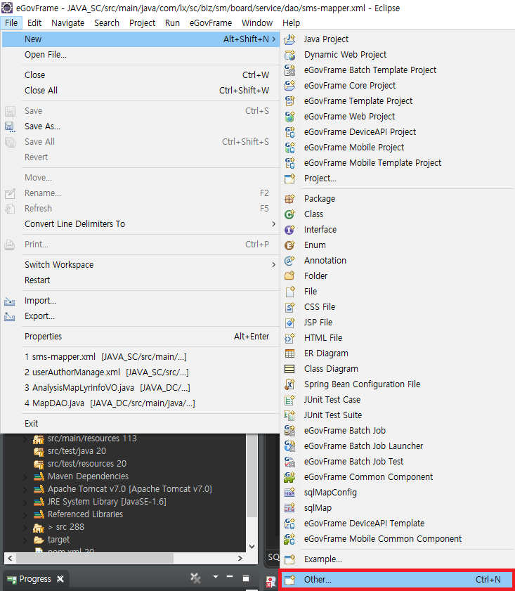 이제 클래스 다이어그램을 만들어보겠습니다. File - New - Other 을 클릭합니다.