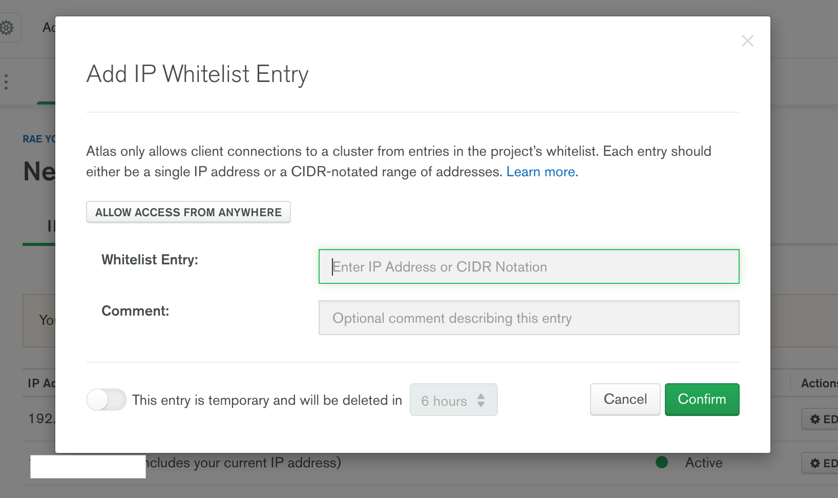 나는 이 ADD CURRENT IP ADDRESS 를 선택했기 때문에 해당 버튼이 비활성화 되어있다.