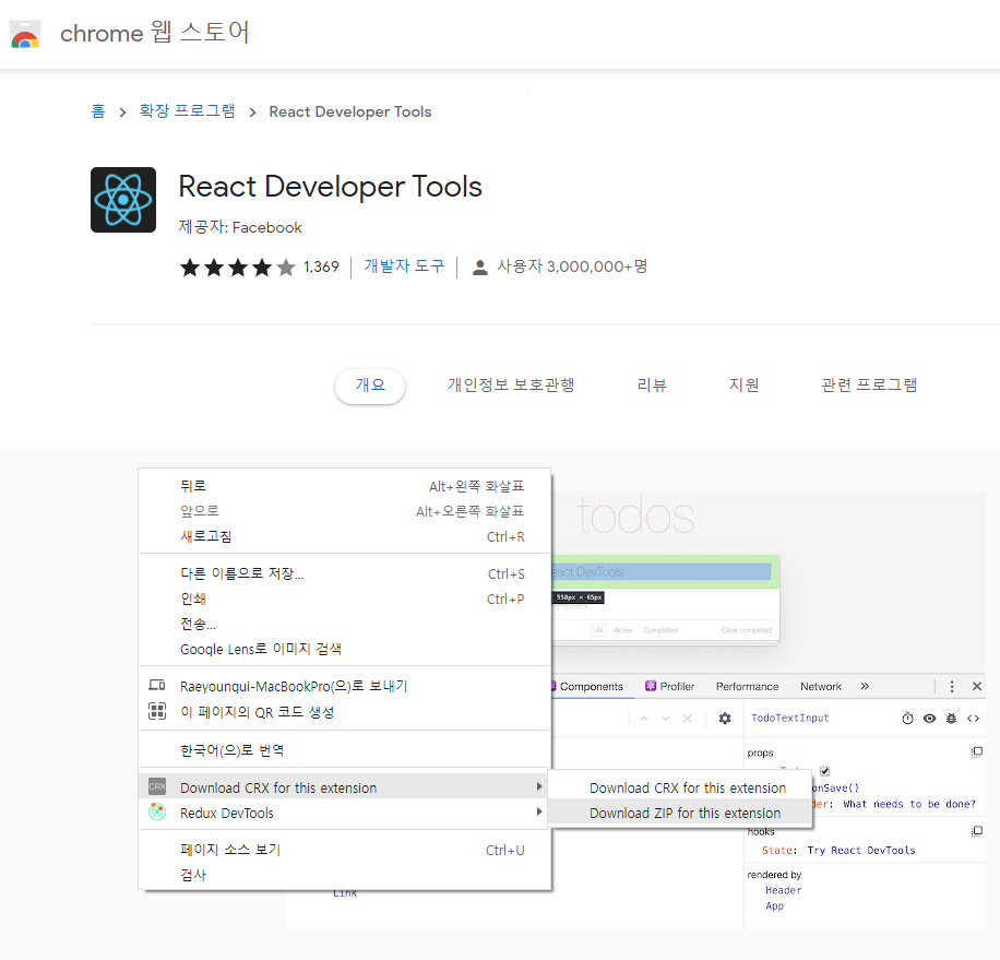 2. 설치하고자 하는 확장 프로그램 화면으로 이동 (ex. React Developer Tools)