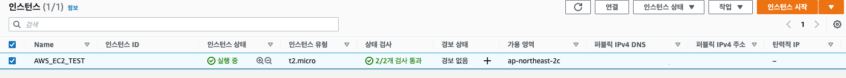 이와 같이 running(실행중) 상태가 되고, 초기화에서 검사 통과 상태로 되면 인스턴스를 실행되고 있는 상태가 된 것이다.