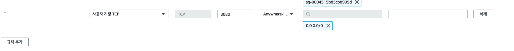 마지막으로 EC2 인스턴스 인바운드 규칙에 8080포트가 설정되어 있어야 한다.