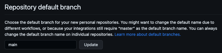 새로운 사용자나 조직, repository 를 만들면 기본 브랜치 이름은 master 대신 main 으로 생성되며 master 링크는 자동으로 main 으로 redirect된다.