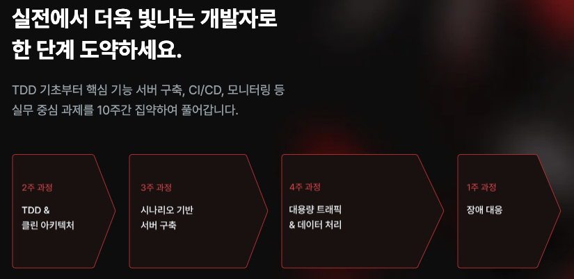 10주간의 일정은 TDD 부터 시작해서 장애 대응까지 있었다.
