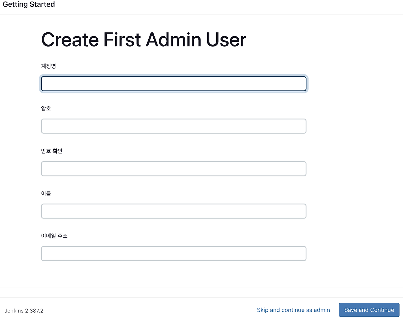 Admin 으로 사용할 계정의 정보를 입력한다.